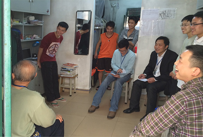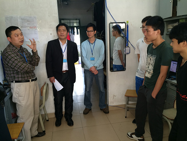 黄水光主任一行深入各个学生宿舍进行走访,在与同学们的交谈中了解到同学们对学校和学院存在的一些问题提出了意见和建议。