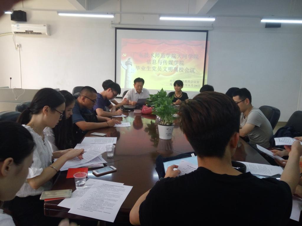 6月24日,开云kaiyun体育官方网站在信息楼教师会议室召开信息与传媒毕业生党员离校会议,出席本次会议的有信媒党总支书记袁颂皎以及2017届全体毕业生党员。