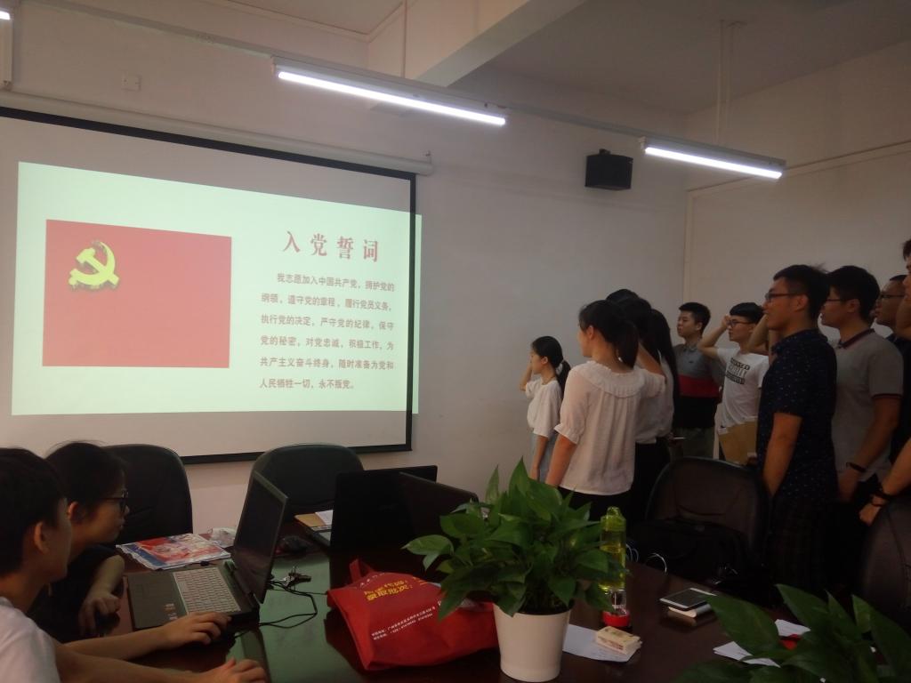 首先,全体起立奏唱中国人民共和国国歌,接着全体毕业生党员重温入党誓词,袁颂皎书记对2017届毕业生党员提出了殷切要求和期望,寄予2017届毕业生党员要学会做人、学会思维、学以致用,清楚自己身上所肩负的时代重任,时刻不要放松对自己的严格要求,要持之以恒地学习和了解党的基本理论知识,把自己的青春和热情投入到祖国中去。