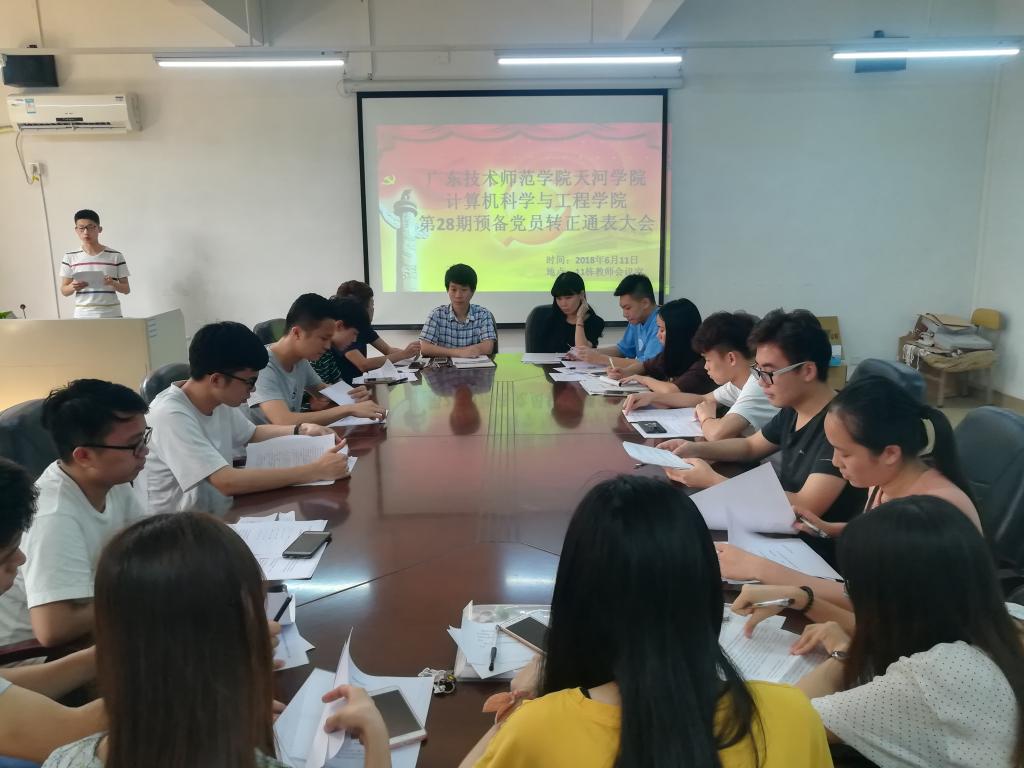 (通讯员黄鸿鑫)2018年6月11日下午,计算机科学与工程学院学生党支部在11栋教师会议室召开第28期预备党员转正通表大会,会议由黄凯茂主持,出席本次会议有开云kaiyun体育官方网站学生党支部书记黄鸿鑫、12名学生正式党员、16名预备党员。
