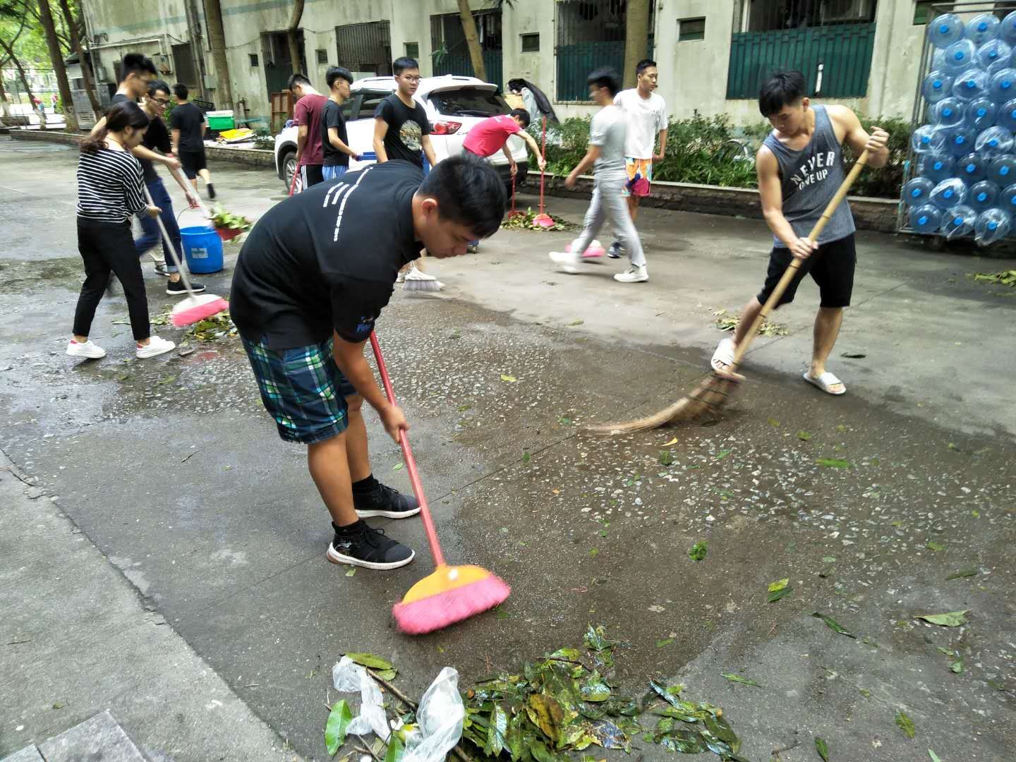 受强台风“山竹”影响,我校校道及部分教学场所,随处可见被风打乱的树枝、树叶以及泡沫片等垃圾杂物。为尽快恢复校园环境卫生,下午2:30,在计算机科学与工程学院党总支副书记刘亮、陈齐民辅导员的带领下,计算机学院学生党支部及团总支学生会27名志愿者,分别在新10栋教学楼、9栋宿舍楼楼下道路开展了清扫环境志愿服务活动。志愿者们认真有序地清理道路及绿化带内的垃圾,并将清理出去的垃圾装入垃圾车。经过各位志愿者们的努力,道路环境恢复了往日的干净整洁。
