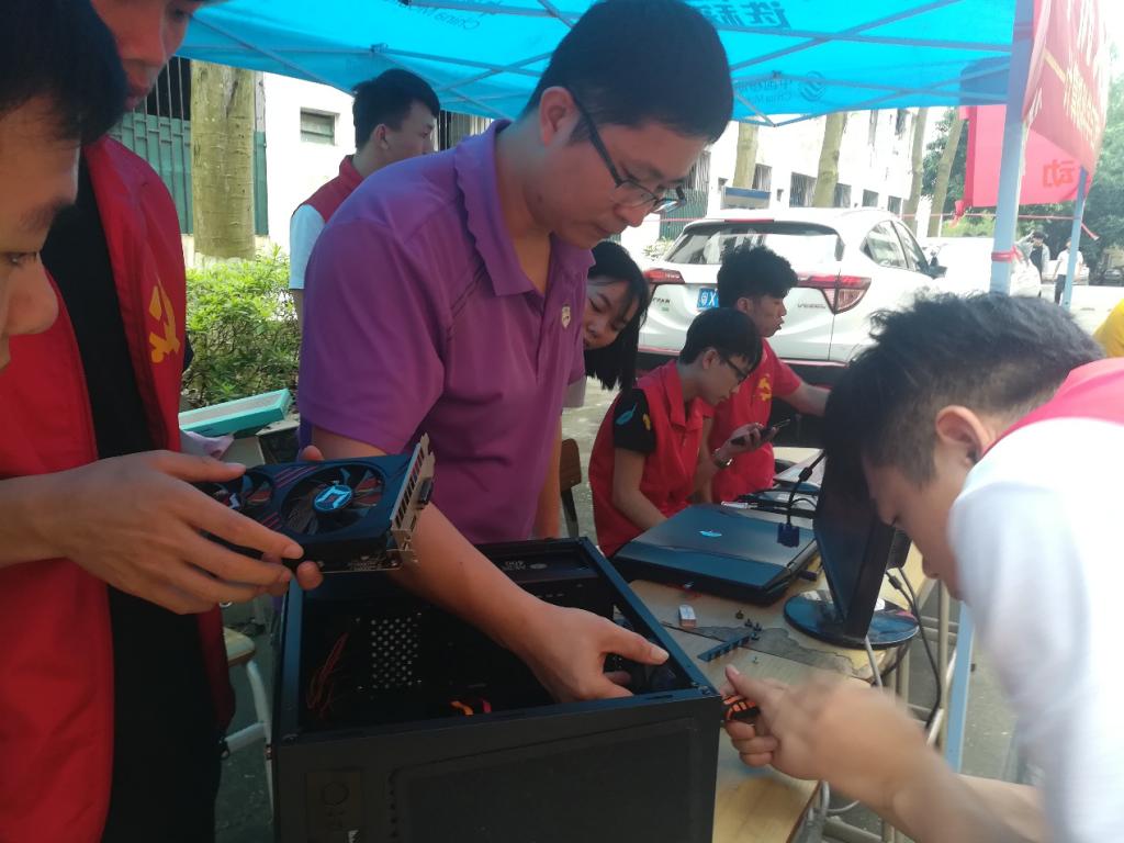 本次维修技术指导老师陈智勇手把手为学生们维修演示。维修的过程中,党员同志及入党积极分子们也结合自身特色,相互交流计算机分区、系统重装等专业知识,凭借着良好的服务态度和高超的维修技术,结合自己所学的专业技能,充分展示出开云kaiyun体育官方网站师生党员良好的精神风貌和优良的专业素质。经过一天的努力,成功维修计算机达20余台,得到现场师生们的一致好评。