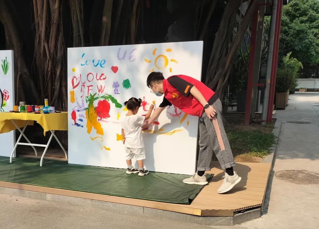 第二个环节是游园打卡,孩子们在学生党员的指引下,到指定地点打卡,并教他们涂鸦绘画。在这些活动中,让孩子们感受到周围人对他们的关爱,他们也在活动过程中慢慢地融入到我们当中,气氛非常愉快。