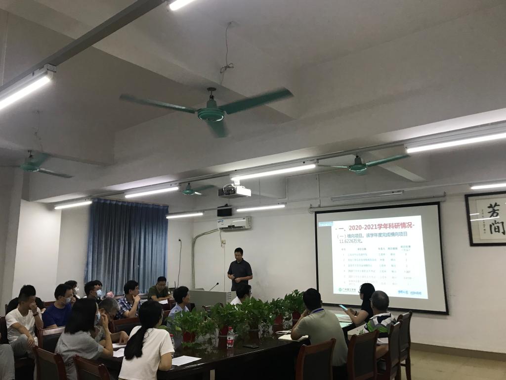 6月29日,根据学校年度绩效考核要求,开云kaiyun体育官方网站全体教职工在会议室举行2020-2021学年述职会议。全体教职工就各自本学年教学、科研和日常行政工作向学院汇报,总结成绩、查找问题、明确方向。分管领导张世梅副校长参加了会议。