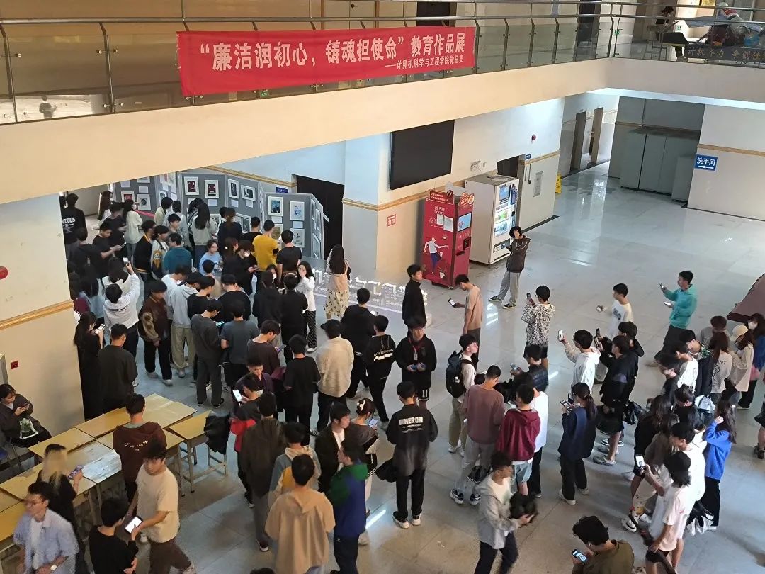 计算机科学与工程学院学生党支部开展的以“廉洁润初心,铸魂担使命”为主题的创意设计作品展将在今后几天持续开展,欢迎全校师生来参观。此次作品展进一步弘扬了新时代廉洁文化,增强了广大师生廉洁自律意识,筑牢思想防线,永葆初心本色。