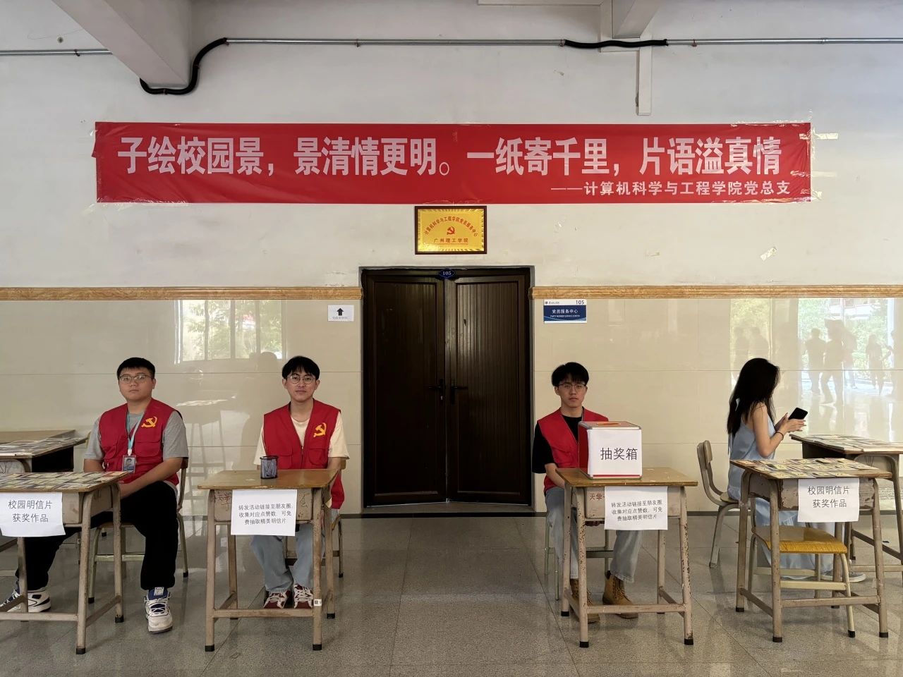 (通讯员: 阳可人)4月23日下午,计算机科学与工程学院党总支于11栋信息楼大厅开展主题为“子绘校园景,景清情更明。一纸寄千里,片语溢真情”的校园明信片制作展。本次活动旨在营造人文环境,繁荣校园文化,增强学生对学校的认同感和归属感,激发广大师生爱校荣校情怀。