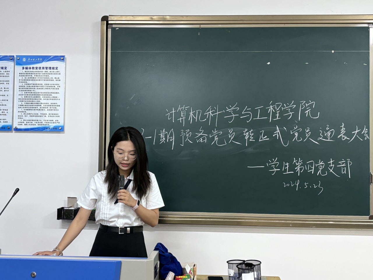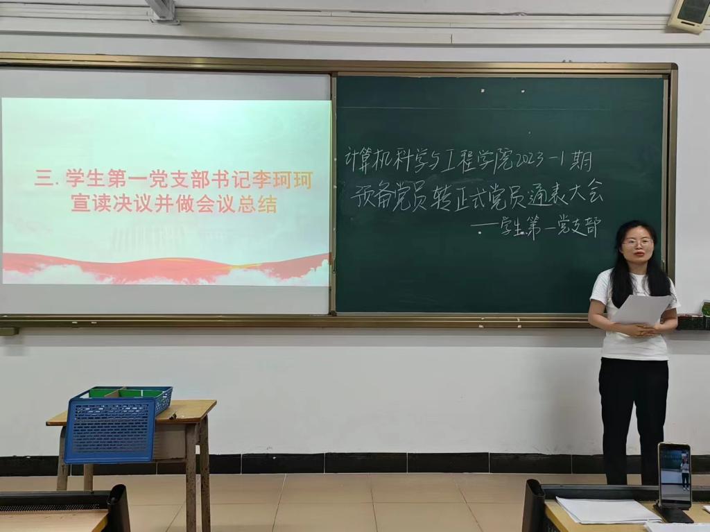 (通讯员:阳可人)5月23日下午,计算机科学与工程学院学生第一、二、三、四、五党支部召开2023-1期预备党员转正式党员通表大会。本次会议以线上线下相结合的方式进行,学生第一党支部书记李珂珂、学生第二党支部书记马岩岩和学生第四党支部书记陈彩风、27名预备党员、全体党员同志和学生党支部工作人员按时参会。