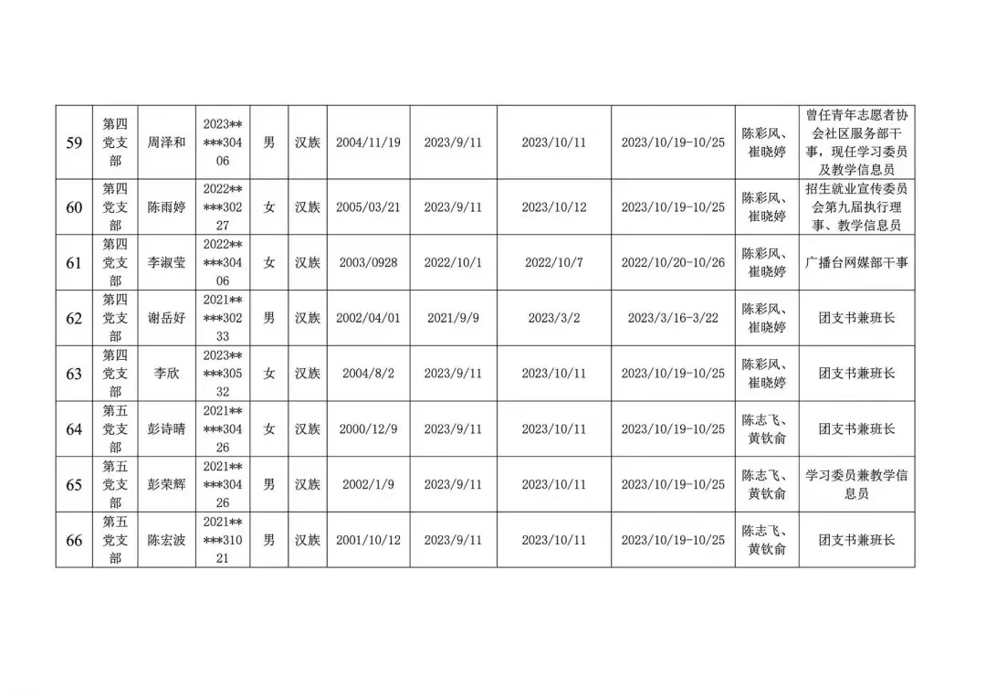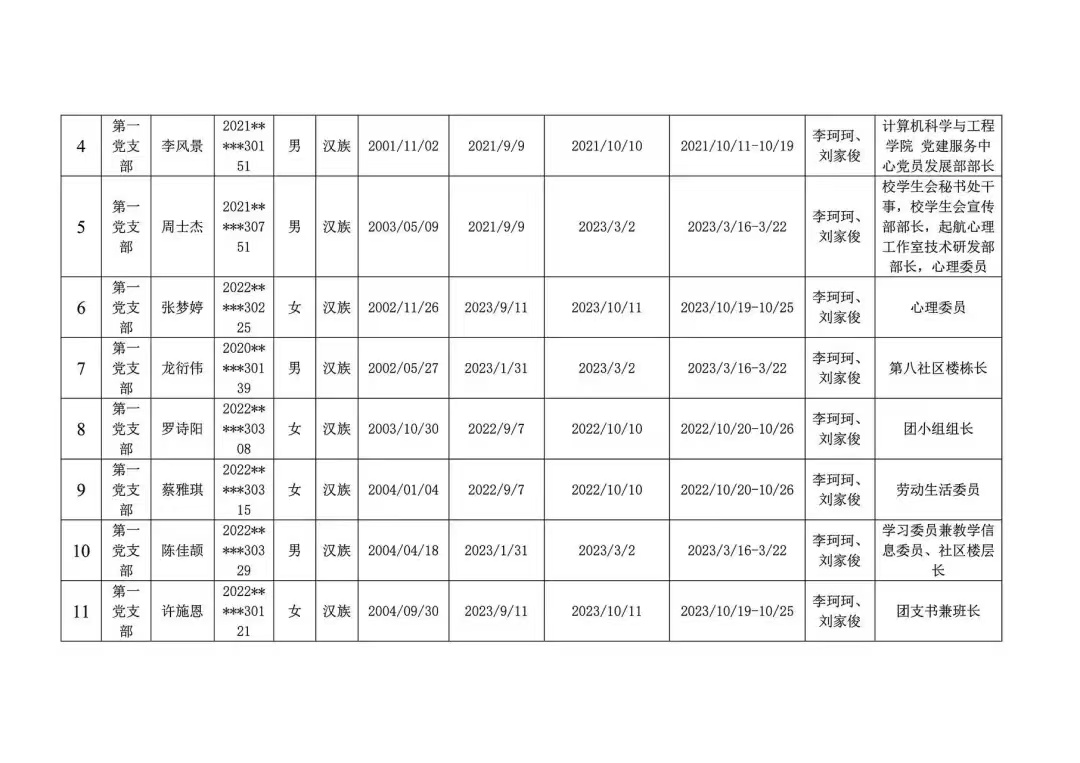 发展对象公示名单