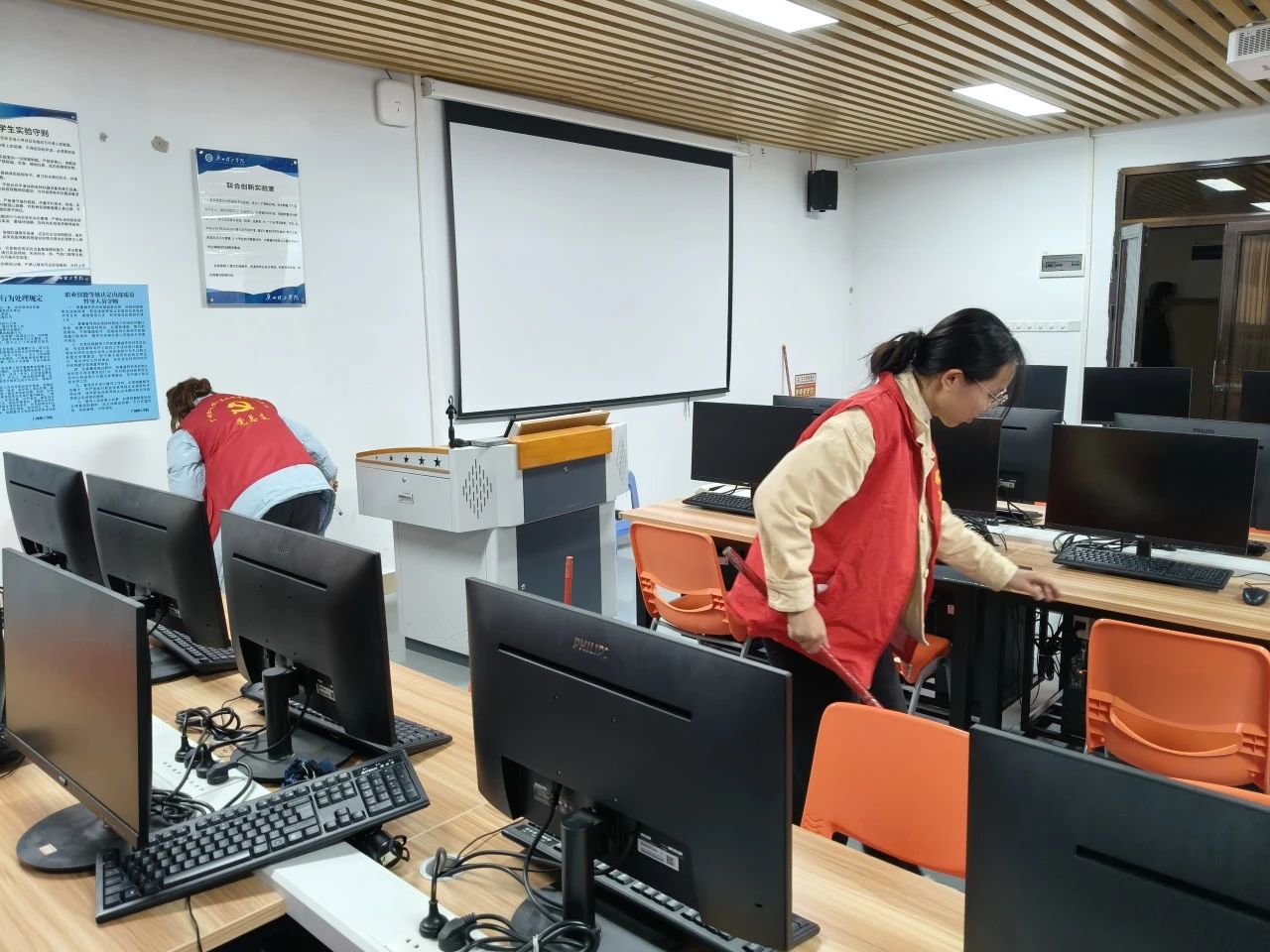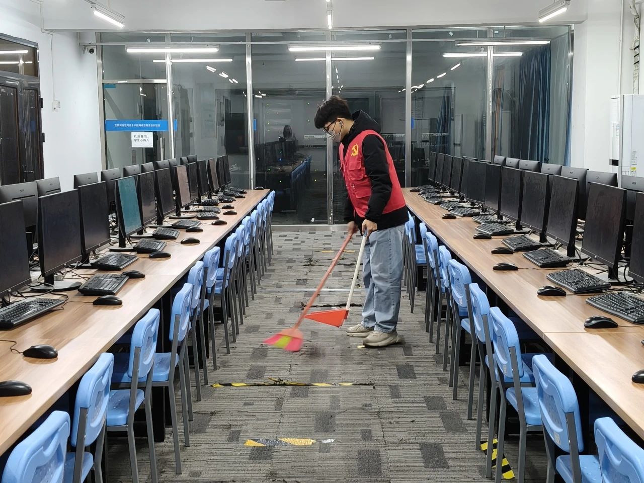 下午2点多,40位学生志愿者带着清洁工具准时到达4栋信息楼大厅,有序地分为三组,跟随党支部工作人员到达各层的教室开展打扫活动。学生志愿者们对各个教室做了全面地清扫,桌椅下的灰尘、角落里的碎屑全都无所遁形。学生志愿者组成小队,合作完成清扫工作,他们细致入微、态度认真地进行清扫,不遗漏任何一处细节。可见开云kaiyun体育官方网站学生勤勉务实的工作态度和认真严谨的工作风貌。在学生志愿者们一丝不苟地整理下,学生和老师的工作学习环境再一次变得干净整洁。