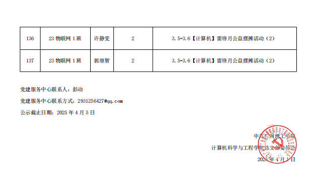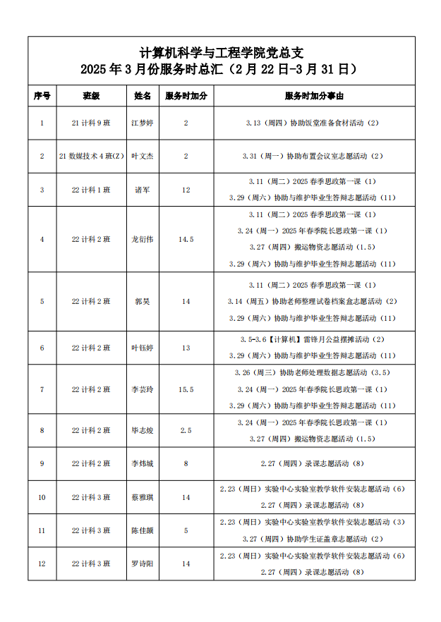 在听取培养联系人、党员和群众意见的基础上,经支委会研究决定,每月对计算机科学与工程学院各个发展阶段的同志进行服务时公示,具体情况公示如下。