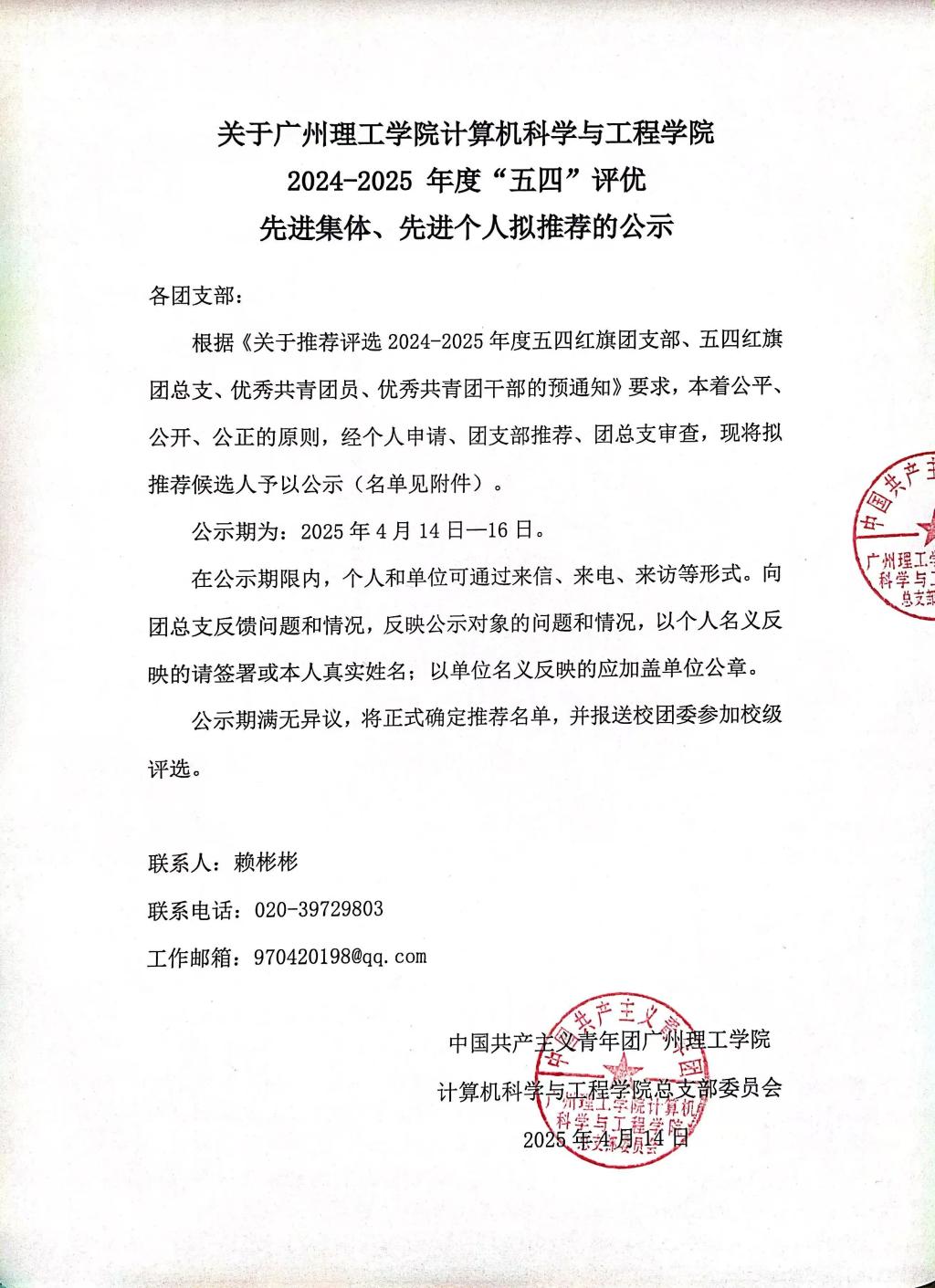 关于开云kaiyun体育官方网站2024-2025 年度“五四”评优先进集体、先进个人拟推荐的公示