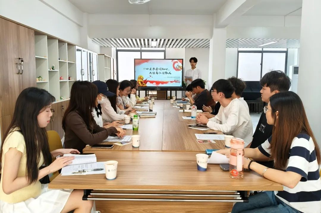 本次读书分享会由工作人员彭浩源担任主持,李珂珂老师、陈彩风老师以及十四名学生党员与学生入党积极分子均按时抵达活动现场。在主持人带领下,参会学生们进行自我介绍、并玩了一些破冰小游戏,现场氛围一下子轻松活跃了起来。分享会正式开始,学生们口中不同的看法和感受如同一片片拼图,拼凑出《乌江引》的样子,但在各种不同观点下蕴藏着学生们同样的一个感悟,他们都被这本书里勇于自我牺牲、甘做无名英雄的大义所打动。学生们不约而同地认为,吃水不忘挖井人,今天的美好生活源自先辈们无私的付出,我们不应该把他们遗落在历史长河里。