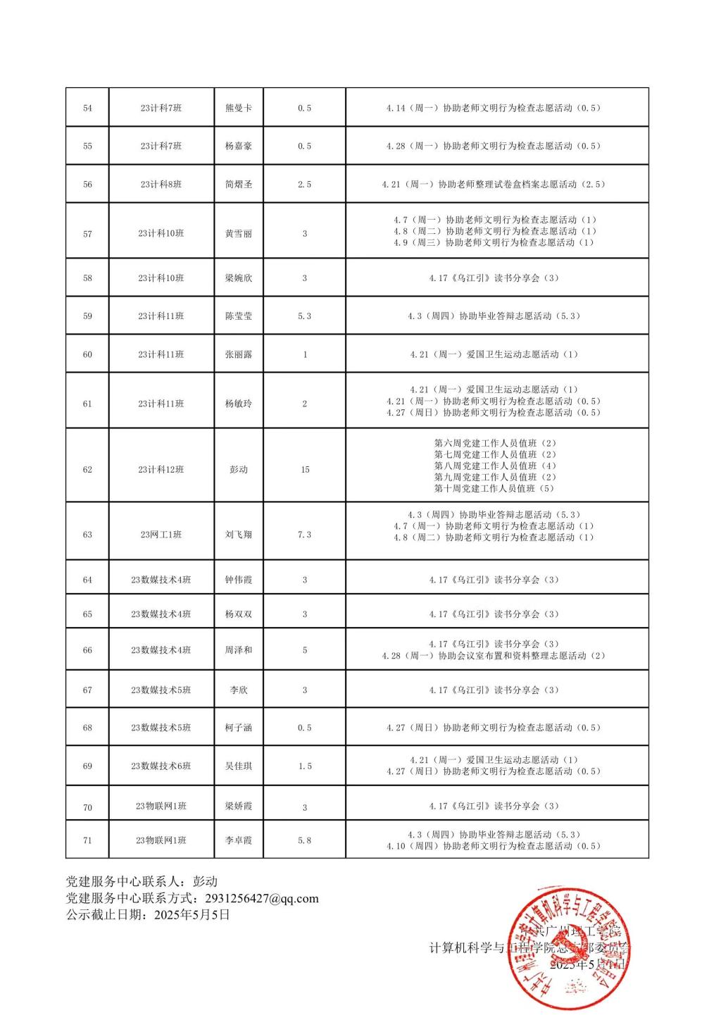 计算机科学与工程学院党总支2025年4月份服务时总汇公示