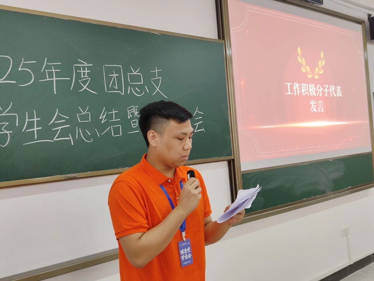 随后,主席团代表冯军贤进行工作总结,回顾过去一年团总支·学生会工作,向全体成员致谢,围绕新学期工作,既展望发展方向,也明确履职要求,凝聚奋进共识。