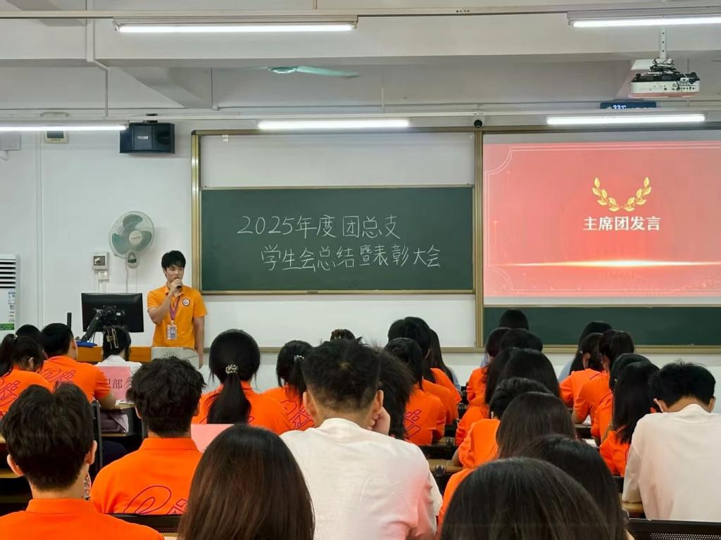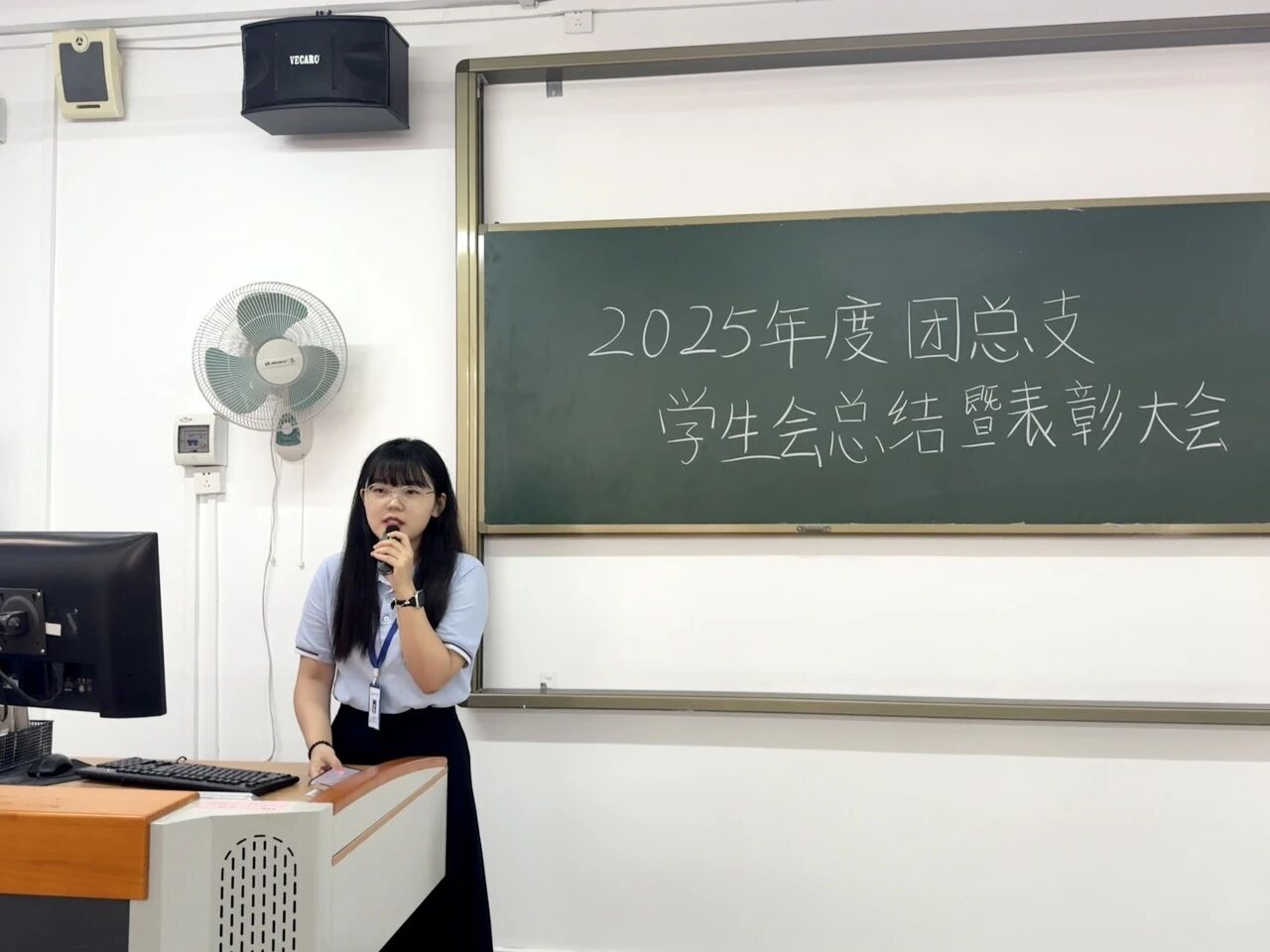 表彰环节,由薛佳慧老师以及冯军贤、李盈颖、马煜盛分别为2024-2025年度第二学期的工作积极分子、优秀干事、优秀干部和先进部门颁发荣誉证书;赖彬彬书记、邓梦铃老师分别为2024-2025年度工作积极分子、先进个人和先进部门颁发荣誉证书。