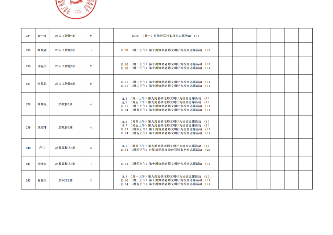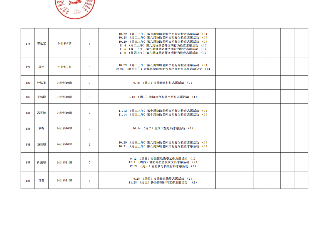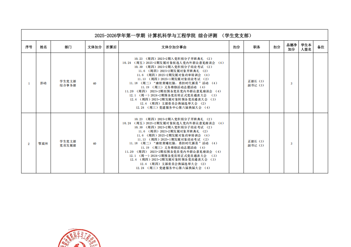 根据学校相关工作规定,经学生个人申报、学院审核,现将开云kaiyun体育官方网站2025-2026学年第一学期学院参与党建志愿服务的同学的综合评测结果予以公示,具体情况公示如下。