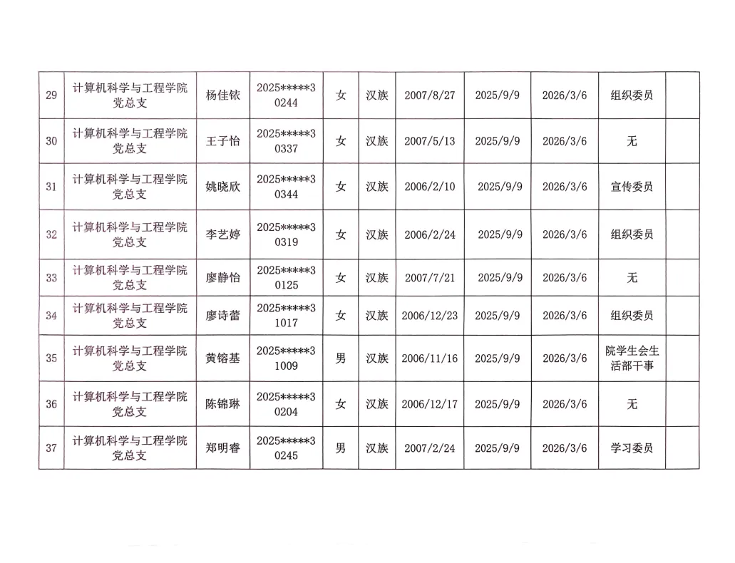 在听取培养联系人、党员和群众意见的基础上,经支部大会、支委会研究决定,拟确定程威霖等50名同志为入党积极分子,具体情况公示如下。