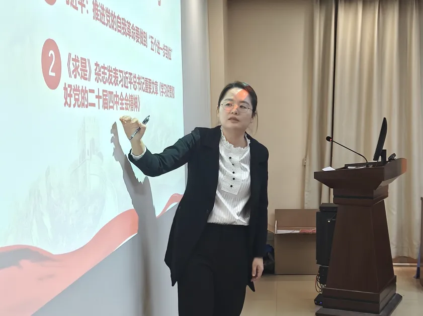会议严格执行 “第一议题” 学习制度,党支部副书记陈星莹领学《推进党的自我革命要做到 “五个进一步到位”》,带领全体党员深刻领会自我革命核心要义,强化纪律意识、筑牢思想防线,推动理论学习成果转化为履职尽责的行动自觉,以过硬政治素养履行教师党员岗位职责。