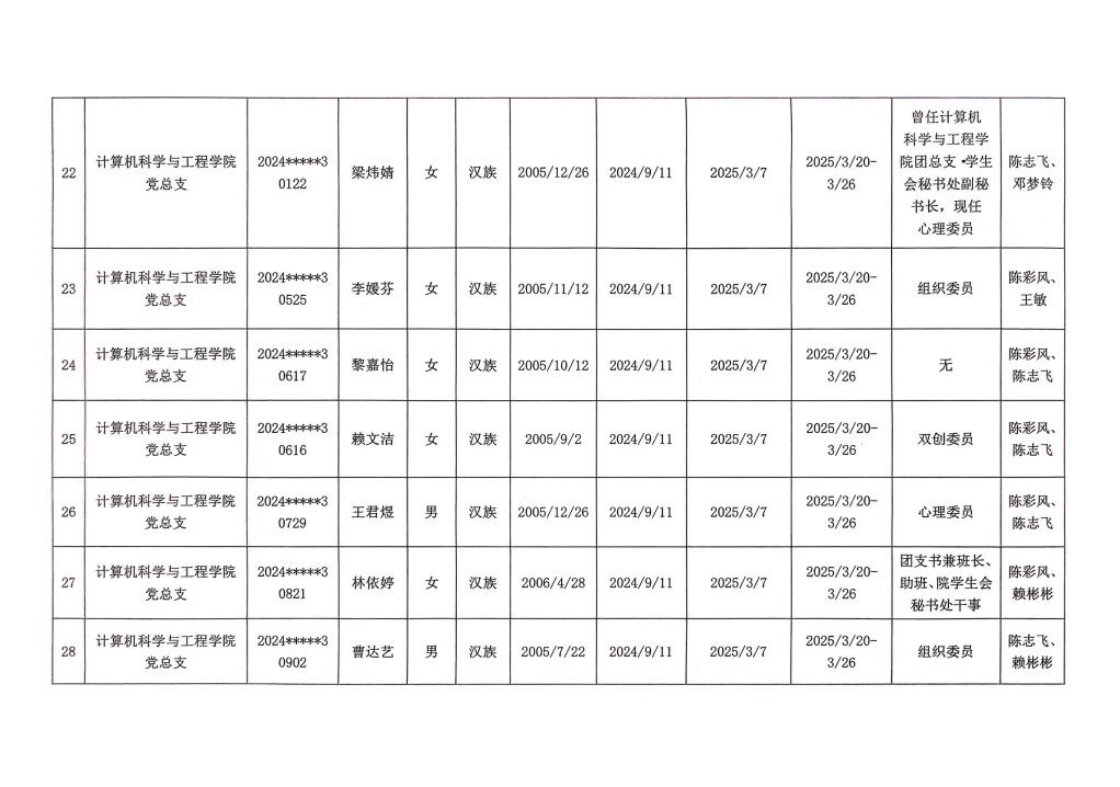 在听取培养联系人、党员和群众意见的基础上,经支部大会、支委会研究决定,拟确定黄秋玲等51名同志为发展对象,具体情况公示如下。