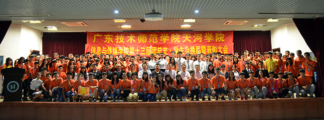 最后,主持人宣布第十三届信息与传媒学院团总支•学生会换届大会圆满结束!到场领导、嘉宾及全体成员上台合影留念。