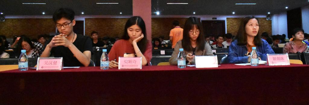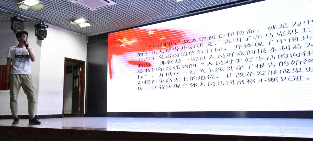 评比活动分上、下半场。上半场评比开始,第一至第七个团支部按顺序轮流进行展示,各班团支书以习近平新时代中国特色社会思想和党的十九大精神为指导,围绕各自团支部思想道德建设、学风建设、组织建设以及班级成绩等方面进行陈述,通过PPT展示了团支部建设特点和良好精神风貌。
