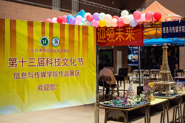 5月19日,信息与传媒学院大学生科技节在综合楼中庭顺利进行。