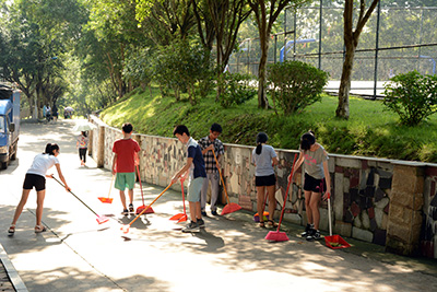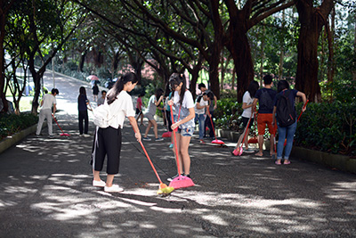 此次活动的主要内容是打扫学校校道卫生。在动员大会上分好的组别有三个小组,每个小组安排一个小组长。三个小组长分别带领自己队伍的积极分子打扫学校山下、山腰以及山顶的卫生,有序分工合作。在活动中,积极分子秉承着“全心全意为人民服务”的宗旨,表现出积极、热情洋溢的服务精神,将校道上打扫得干干净净。