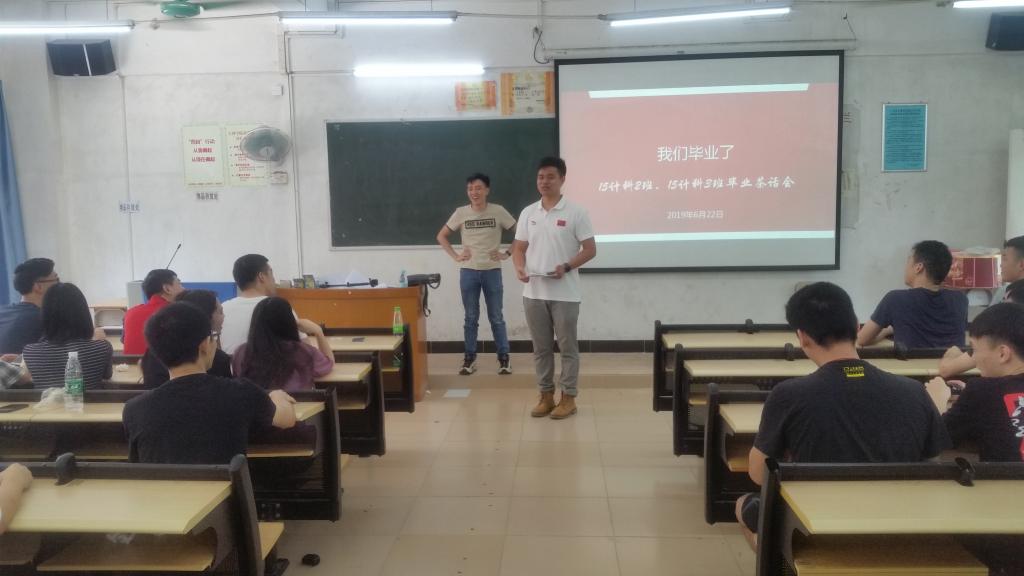 15计科2和计科3班以茶话会的形式开展了最后一次班会。同学互相分享了这段时间的经历,然后移步校园,再走一次校园那些路,再一次用合照的形式记录下来毕业的最后时刻。