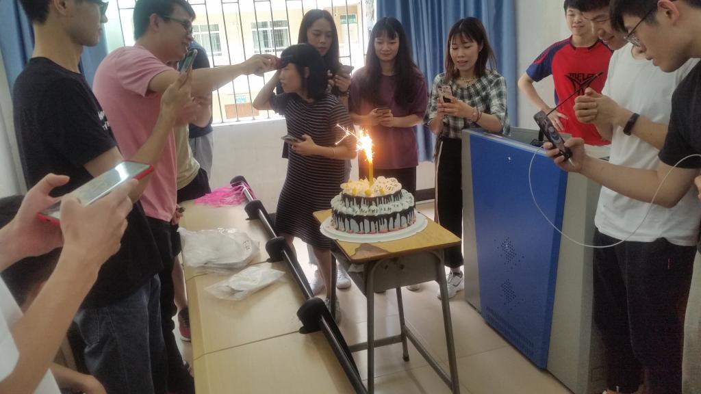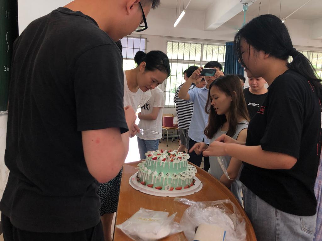 班会最后,各个班级都收到学院为他们定制的专业蛋糕,这蛋糕上写着每位同学的名字。同学们纷纷拿出手机,记录下这一切。最后,大家一起吃着蛋糕,互相祝福“糕”兴毕业、此后顺利!