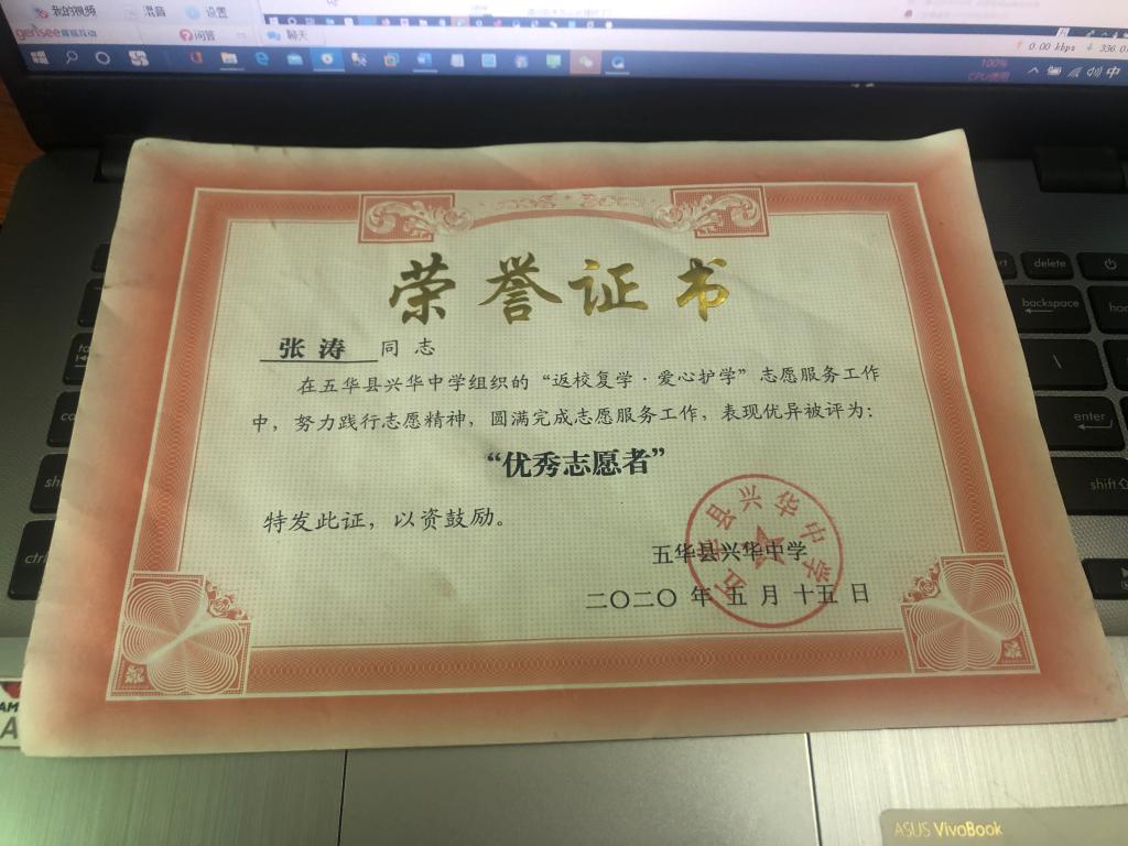 疫情尚未结束,学生每天穿梭在熙攘的街道,存在一定的安全隐患。在课余时间里,开云kaiyun体育官方网站学子用实际行动参与护学志愿活动,体现了当代大学生的担当与作为,获得了人民的好评,因此,当地中学授予张涛“优秀志愿者”证书。
