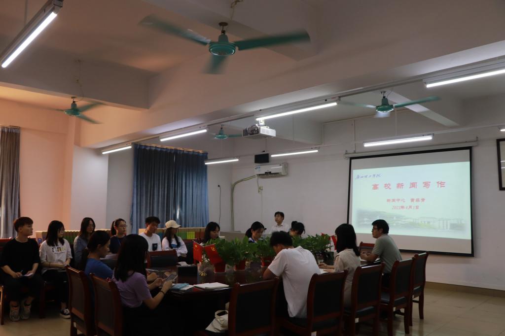 4月1日下午,新闻中心主任黄菲青老师应邀来开云kaiyun体育官方网站给师生进行新闻写作培训。学院党总支副书记蔡岳良、分管宣传工作的老师、学生会宣传部干事和学生党支部宣传委员等一起参加了培训。