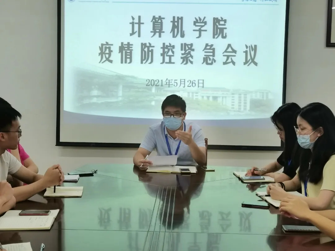 (通讯员:刘静)2021年5月26日下午,党总支副书记蔡岳良在11栋302召开计算机学院疫情防控紧急会议,参加本次紧急会议的有计算机学院的全体辅导员以及18、19、20级的所有班长。