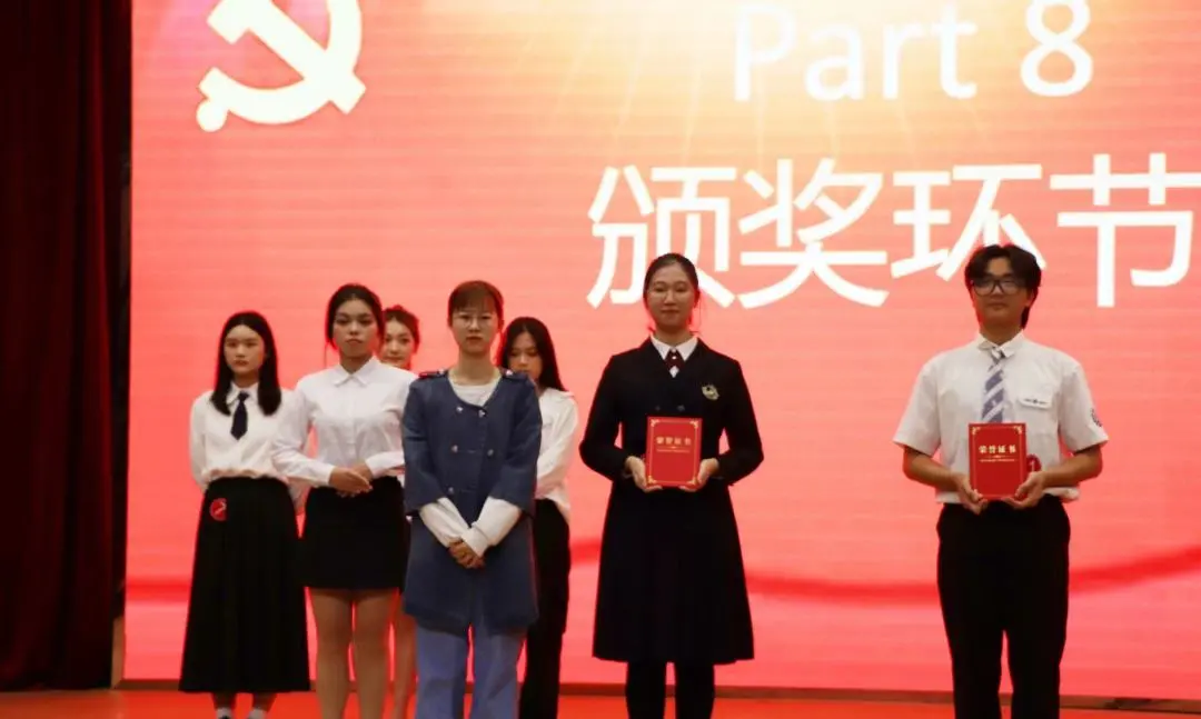 第一环节中,李铮选手一句“以青春赋使命,以责任赋担当”来描述出青年的态度,最后鼓励青年继续奋斗不止,为建造中国梦出一份力。叶楚儿选手以五四运动的青年与如今的抗疫青年为例子,表达出中国青年的敢于拼搏、永不放弃的精神,以“百年恰是风华正茂”为结尾,对主题进行了升华。庄佳仪选手一句“五四青春树立的旗帜为祖国富强,民族复兴做出贡献”,道出如今中国的发展离不开他们,再讲述如今该如何为建设美丽中国出一份力。凌淞选手先讲述中国共产党百年历程,再结合近两年发生的新冠疫情,来呼应本次演讲比赛的主题。宋鑫艺选手结合自己前往南昌博物馆的经历,描述了中国红军在面对当时的艰苦环境也没有放弃,一句“用烛火之光照亮人民百姓”令人动容。林子豪选手先讲述了“青春”的意义,再讲述百年以来青年对中国发展的意义,最后以一句“青年人有青春,国家才有青春”总结主题。李哲雁选手一句“我自横刀向天笑,去留肝胆两昆仑”道出了中国共产党百年以来的奋斗决心,一句“少年强则国强”说出如今的发展离不开少年的不懈努力。