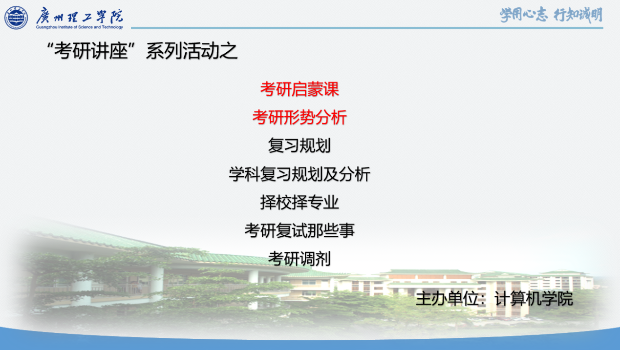 本次培训主要针对学院准备考研的同学,系统梳理考研内容和知识,解决他们存在的共性问题。刘老师深入给同学们分析当前考研形势、备考攻略、如何避过考研中的那些坑。整个培训持续一个半小时的时间,刘老师从怎么有效备考、怎么选择合适的考研专业和考研学校、怎么复习公共课和专业课都给学生进行了详细的讲解。