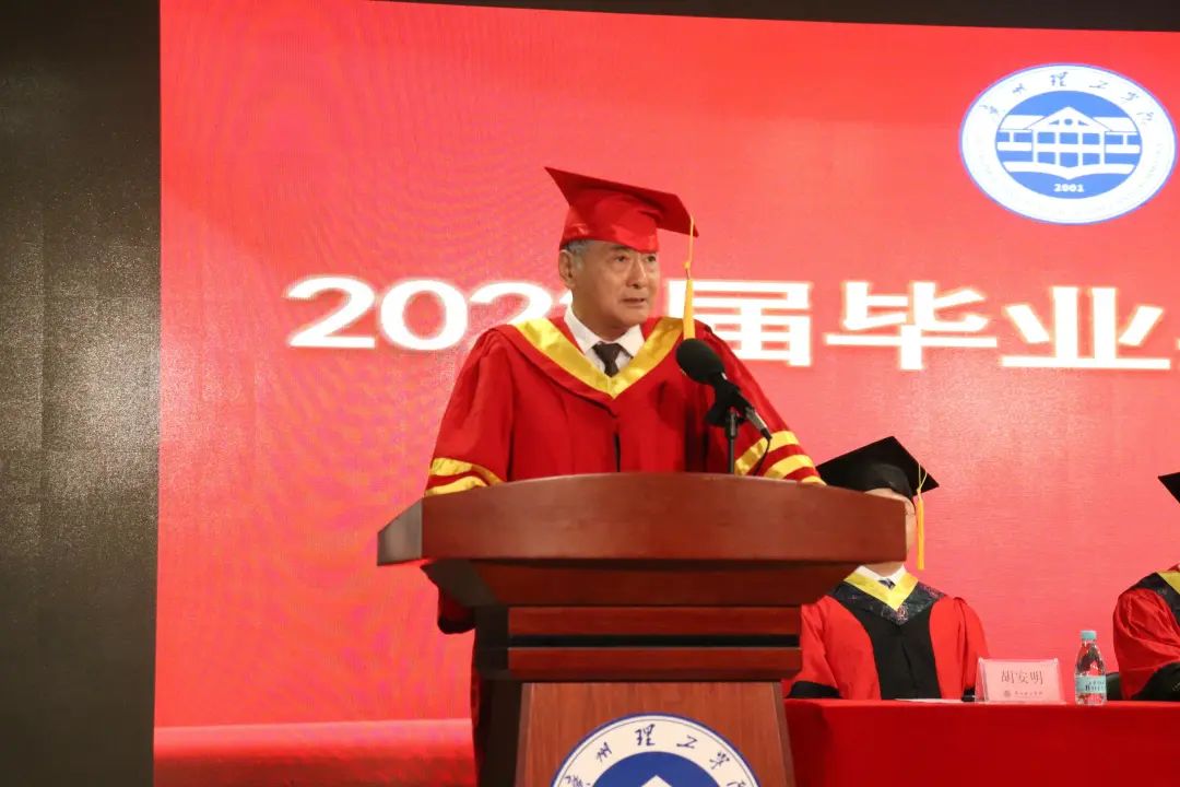 会上,原峰山院长代表学院讲话,祝贺毕业生顺利完成本科学业并给同学提了三点殷切寄语:一是要终身学习。终身学习,是别人永远抢不走的竞争力,是这辈子最硬的底气;二是要坦然面对生活中遇到的一切。未来的路很长,有坦途,也会有坎坷,要坚信“熬不住的时候再多熬一会儿,如果苦难战胜了你,它就成了你的屈辱,可当你战胜苦难时,它就成了你的财富”。三是要有担当。把个人的前途和社会发展结合起来,立志如山、行道如水,在百年未有之大变局中去建设、去创造、去改变,不忘使命,不负时代。岁月不居,未来可期,原峰山院长鼓励同学要勇敢前行,乘风破浪,逐梦前行,一起向未来。