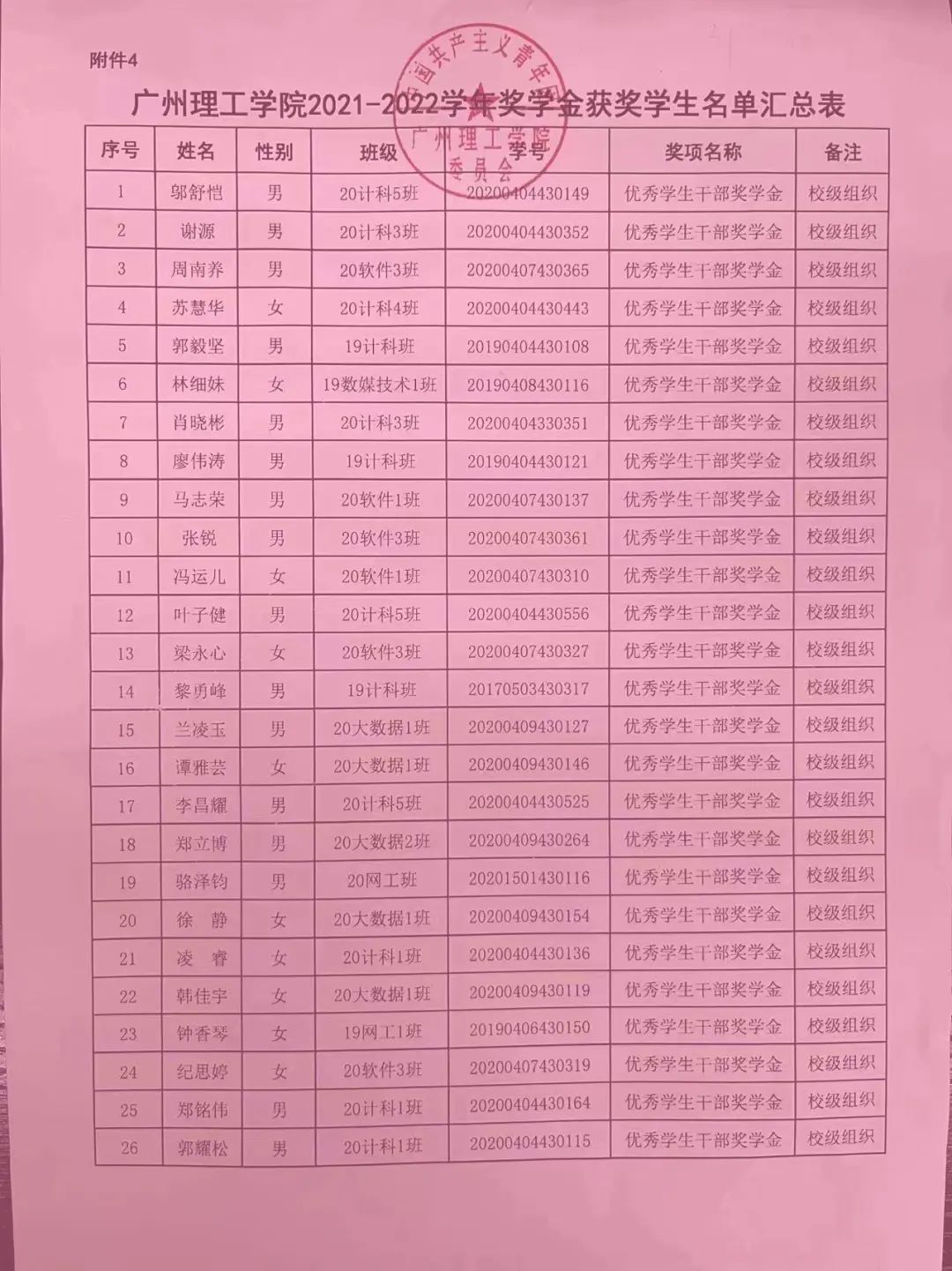 根据《广州理工学院学生奖励办法》,按照公平,公开,公正的原则,经校组织推优,校团委审核,学院复核,拟定开云kaiyun体育官方网站2021-2022学年校级优秀学生干部奖学金名单并进行公示,时间为2022.09.17-2022.09.19。