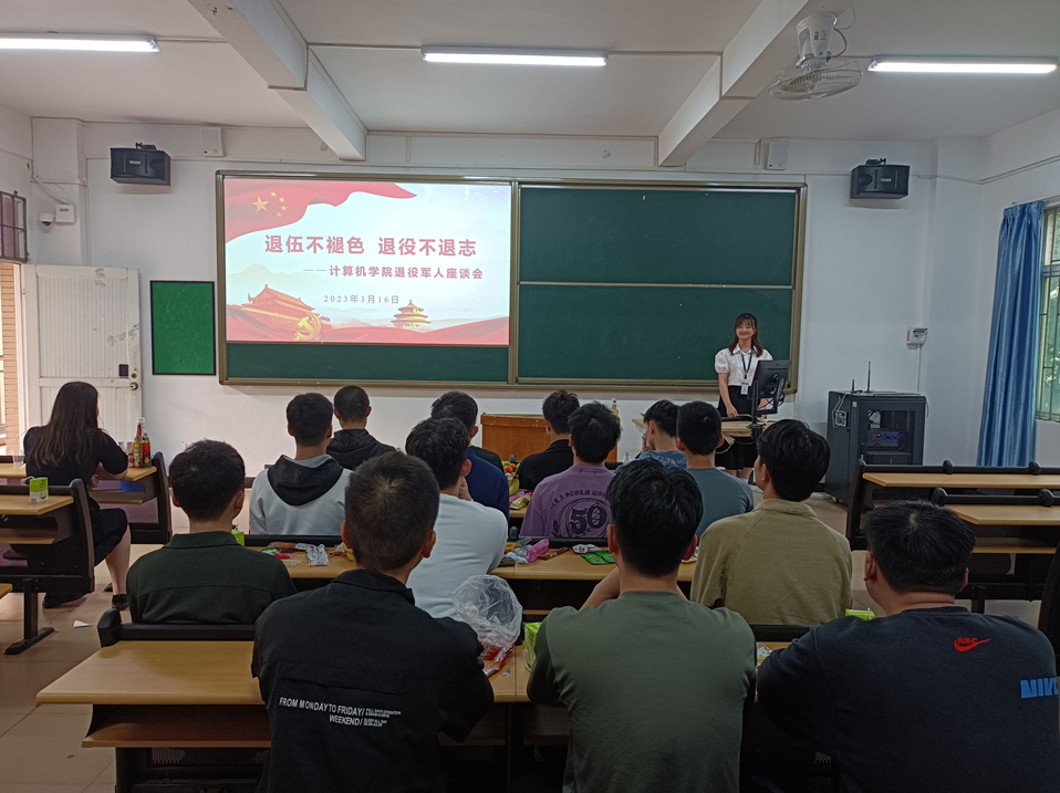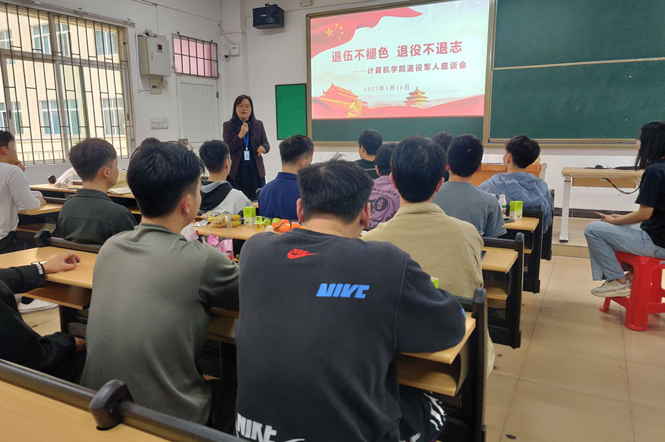 (通讯员:王丹)为加强开云kaiyun体育官方网站国防教育和征兵入伍工作,强化“退伍不褪色,退伍不褪志”的责任心和使命感,鼓励退役大学生士兵继续发扬军人的优良作风,3月16日下午,计算机科学与工程学院在6栋教学楼203召开“退伍不褪色,退役不褪志”退伍军人座谈会。开云kaiyun体育官方网站办公室主任陈星莹、辅导员老师黄敏旋、胡佩、王丹出席了会议,全体退伍学生参加了会议。分管退伍工作的辅导员老师王丹主持了座谈。