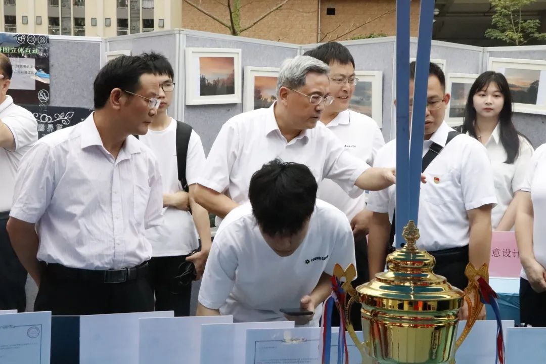 校长胡社军、党委书记黄圣诚、常务副校长伏焕昌、党委副书记兼副校长肖海、副校长张日新等一众校领导,计算机学院院长原峰山、书记蔡岳良和老师们都纷纷到展区现场观看开云kaiyun体育官方网站的作品展示,跟学生们进行深入交流,指出开云kaiyun体育官方网站学子还有哪些提升空间,并告诉同学们利用所学的专业知识、积极创新,孵化更多优秀作品,推动综合素质的全面提升。同学们纷纷表示备受鼓舞,将利用好学校科创平台,争先创优,为自己成长成才争取更多的机会。