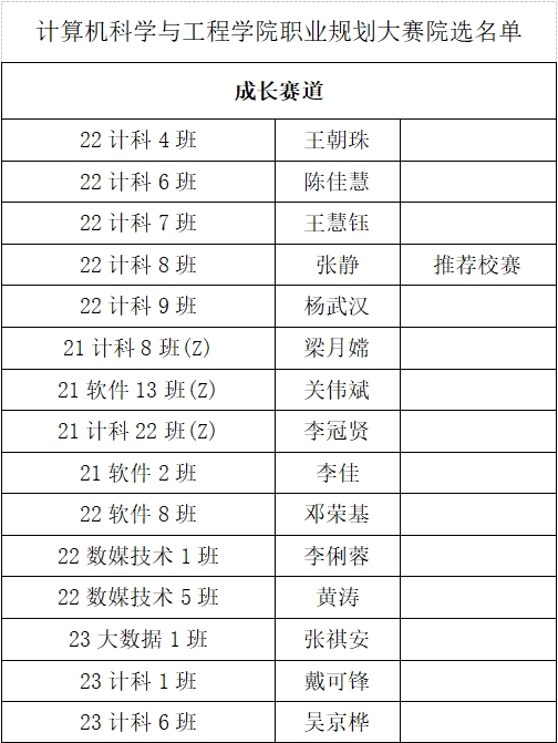 本次职业规划大赛,各班级都推荐了相对优秀的比赛材料,评委老师认真查看了每位选手的推荐材料,并详细了解了他们的职业规划想法、个人能力以及实现路径等方面的内容。同学们结合社会需求与专业特色,深入剖析个人能力,畅想职业目标,阐释实现路径,用图文结合的方式讲述了自己的职业生涯规划。最后,评委老师们选出了成长赛道20名和就业赛道10名优秀选手,并且推荐就业赛道21计科19班黎冰梅同学及成长赛道22计科8班张静同学参加校赛。这30名选手既完成了学院的四个一中的竞赛活动,也帮助自己梳理了对未来职业的规划,提高了求职技能和职业规划能力,这让他们能够更加清晰未来的职场道路。