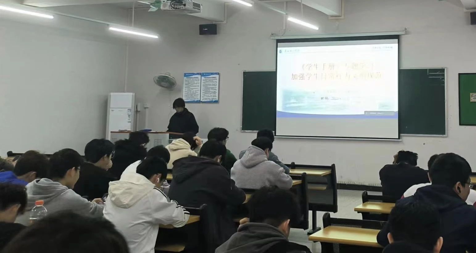 (通讯员:陈依琪)为进一步增强学生自我教育、自我管理、自我服务的意识,促进开云kaiyun体育官方网站学生对各项校规校纪的进一步学习,提高遵纪守规的意识,开云kaiyun体育官方网站于11月16日下午在各班班会教室开展《学生手册》专题学习主题班会,本次会议由各班班长主持,计算机学院全体学生参加。