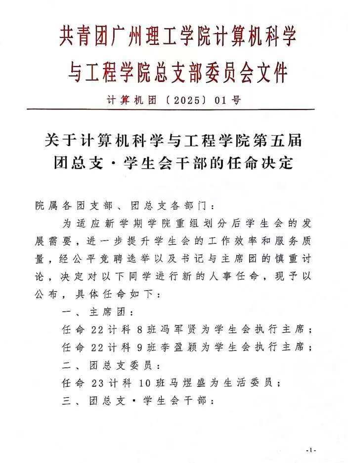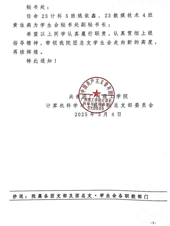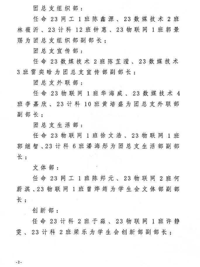计算机学院第五届团总支.学生会干部的任命决定