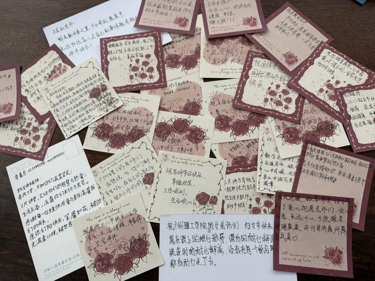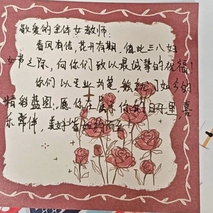 同学们用最朴素真诚的方式,表达了最深厚的情感,让尊师重道的美德在笔墨间传承,在故事中流转。这不仅是一次节日的仪式,更是一次情感的共鸣。它让女教师们的付出被看见、被珍惜、被铭记;也让学生们明白,最好的教育,源于心灵与心灵的相互温暖。