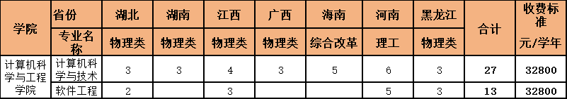 计算机科学与工程学院2024年外省本科招生专业计划表