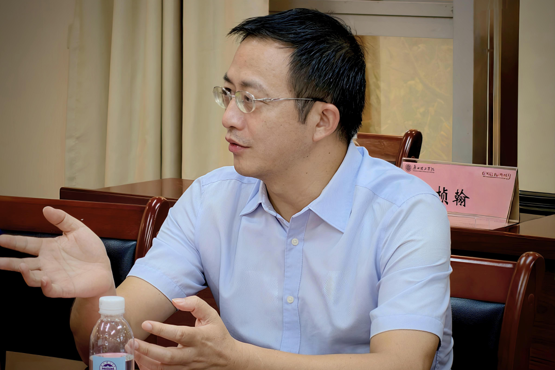 计算机科学与工程学院、人工智能与数字经济产业学院院长贺敏伟致欢迎辞,对广东农工商职业技术学院师生的来访表示热烈欢迎,并强调两校在数字媒体技术专业领域的合作潜力。他表示,期待以此次交流为契机,推动双方资源共享与协同发展。