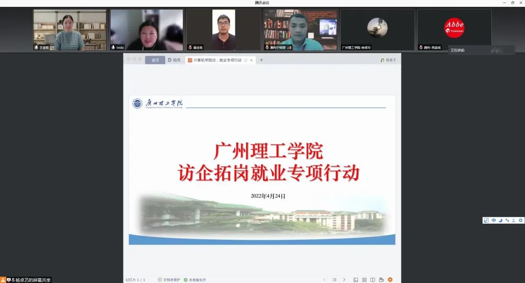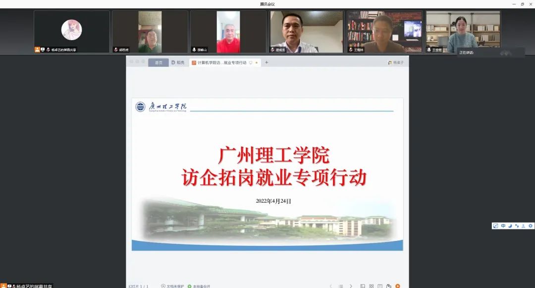(杨卓艺)4月24日,广州理工学院党委副书记、纪委书记、副校长胡思虎,招就处处长唐成龙,计算机学院院长原峰山、党总支书记蔡岳良、副院长王煜林等线上走访腾科网络公司、砺锋科技公司,访企拓岗促就业,切实帮助2022届毕业生好就业、就好业。