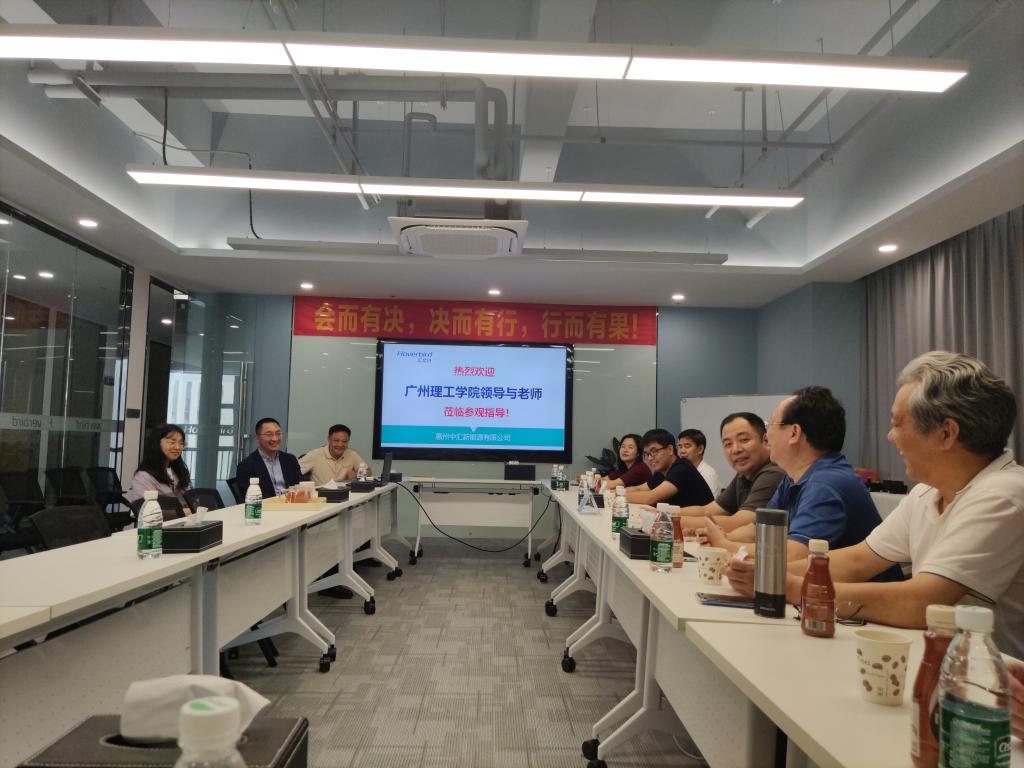 随后,贺院长一行前往惠州中汇新能源科技有限公司进行参观交流。中汇新能源科技有限公司董事长刘斌向学院一行详细介绍了公司的发展概况、核心业务和人才培养规划。作为国内领先的新能源公司之一,中汇新能源已形成深圳总部与无锡、惠州、重庆三地分公司同步发展的格局。刘董事长表示,随着新技术的发展,企业对于新一代信息技术等人才的需求日益旺盛,期待与高校合作培养更多优秀人才。