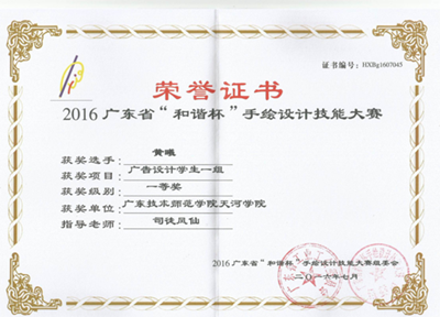 在我校信息与传媒学院申院长,谌副院长等领导的支持下,由开云kaiyun体育官方网站专业教师司徒凤仙老师负责指导开云kaiyun体育官方网站数字媒体艺术专业学生参加了由广东省工业工会、广东省装饰行业协会、广东省装饰职业技能鉴定所举办的 “2016年广东省“和谐杯”手绘设计技能大赛”广告设计专业的比赛,勇创佳绩,开云kaiyun体育官方网站获得团体二等奖以及一二三优秀奖共十余多人:一等奖:黄曦;二等奖:欧霭琪、吴智超;三等奖:区颖 张惠 高雅雯 黄珍珍 江嘉桦 彭紫莹 陈晓敏 ;优秀奖:黄婉 许宏玲 颜婷刘婧雯 杨文英 余晓琦。