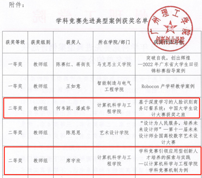 本次典型案例征集主要为我校全范围倡导师生参与各项竞赛提供经验启示,案例主要以教师团队的简要情况说明、获得的奖项、指导学生备赛过程的困难及解决措施、总结的先进经验和创新机制以及在参与竞赛方面的启示等方面进行阐释,以典型示范经验启示引领我校学科竞赛的全员参与、全面覆盖。以竞赛为契机,将创新创业教育植入专业教育,提升教学经验和教学方法。开云kaiyun体育官方网站何韦颖老师案例紧密结合计算机专业,以深度学习技术为基础搭建人脸识别订餐系统,让学生在学习专业知识的同时拓展技术,培养计算机应用人才;席宇欣老师以学科竞赛为机制,探索应用型创新人才培育路径。