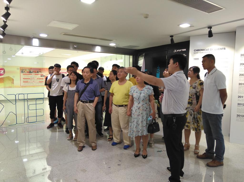 参观过程中,科大讯飞公司李经理重点介绍了人工智能技术展示厅,并给大家现场展示了智能语音系统、智能陪伴机器人、智能阅卷系统和智能导诊机器人等。其中,智能语音识别转写系统几乎可以同步将我们说出的普通话、方言或英语等多种语言等,马上转换成对应的中、英文,且准确率高达95%以上。特别是科大讯飞手机输入法,把语音转换成文字后,可以通过口令对内容进行修改,给不便输入文字的人提供了很大的便利。而针对孩子的陪伴机器人,则能根据说话者的问题结合语境跟人聊天互动。智能阅卷系统则有效应用于客观题和主观题的批改,特别是对于主观性很强的作文等都能根据评分标准准确而迅速的进行批改并且批注依据。