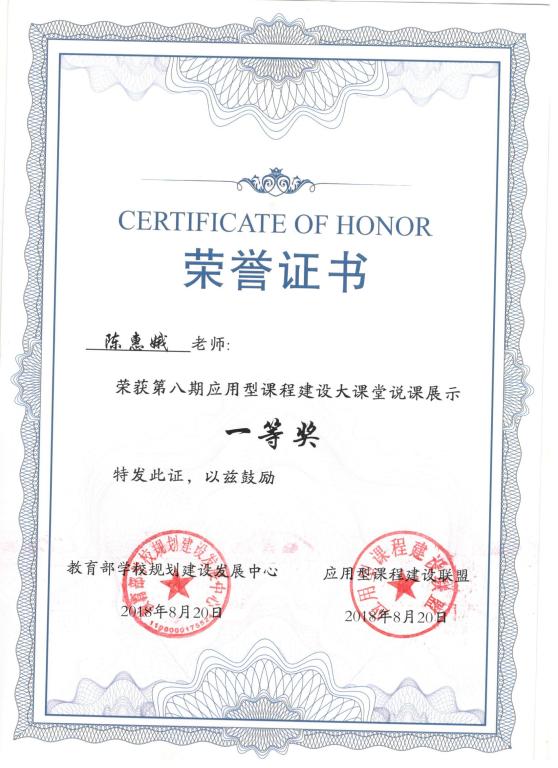 (通讯员 陈惠娥)日前,由教育部学校规划建设发展中心主办的“第八期应用型课程建设大课堂”在厦门举行,我校计算机科学与工程学院陈惠娥老师的“《前端设计》应用型课程改革与实践”说课展示荣获全国一等奖。